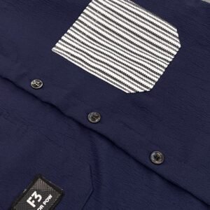 IMPORTED CRUSH FABRIC DOWNSHOULDER 3/4 SLEEV NAVY BLUE SHIRT