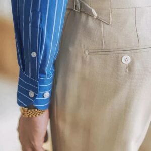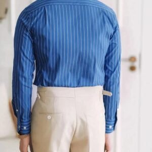 Be the first to review “Men’s Casual Full Sleeve Sky Blue Cotton Roman Strip Shirt”